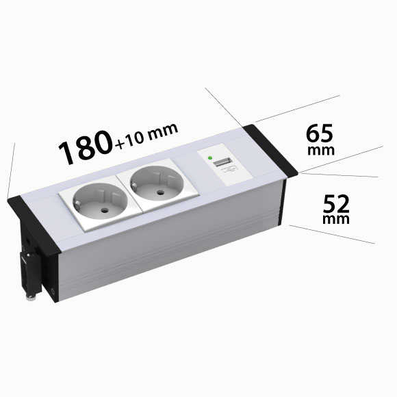 2 Schuko + 1 USB Charger