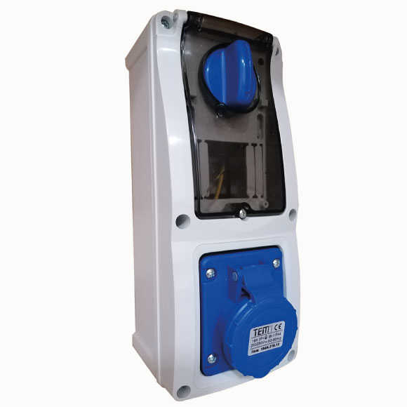 3x16 Sigortalı Duvar Prizi İP44 İçten Şalterli Sigortalı Dikey Tip